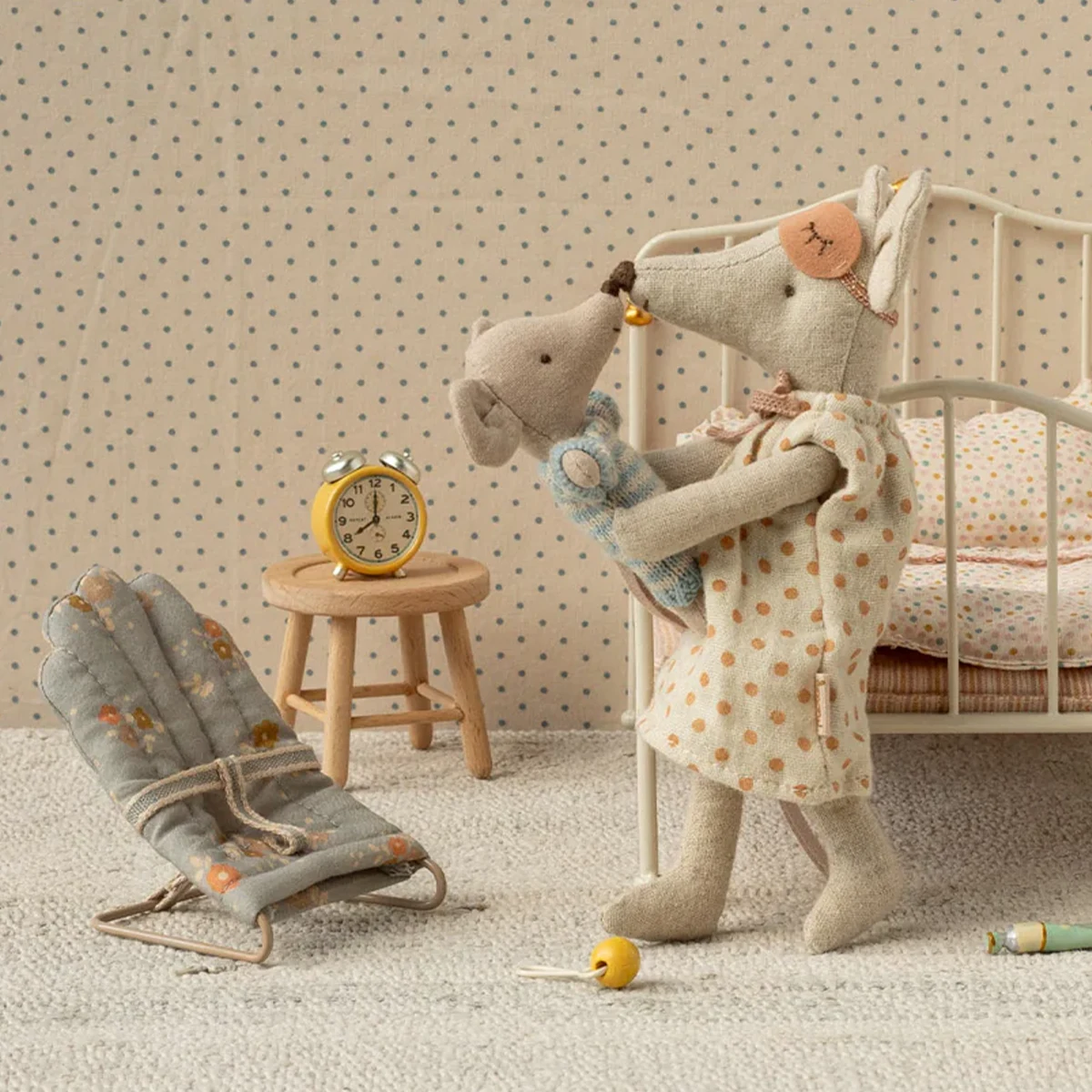 Lieferumfang: 1 Maileg Babysitter/Babywippe in blau. Lieferung ohne weiteres Zubehör.