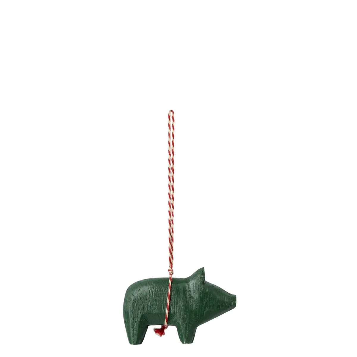 Lieferumfang: 1 x Maileg Ornament Schwein aus Holz in grün. Lieferung mit Kordel.