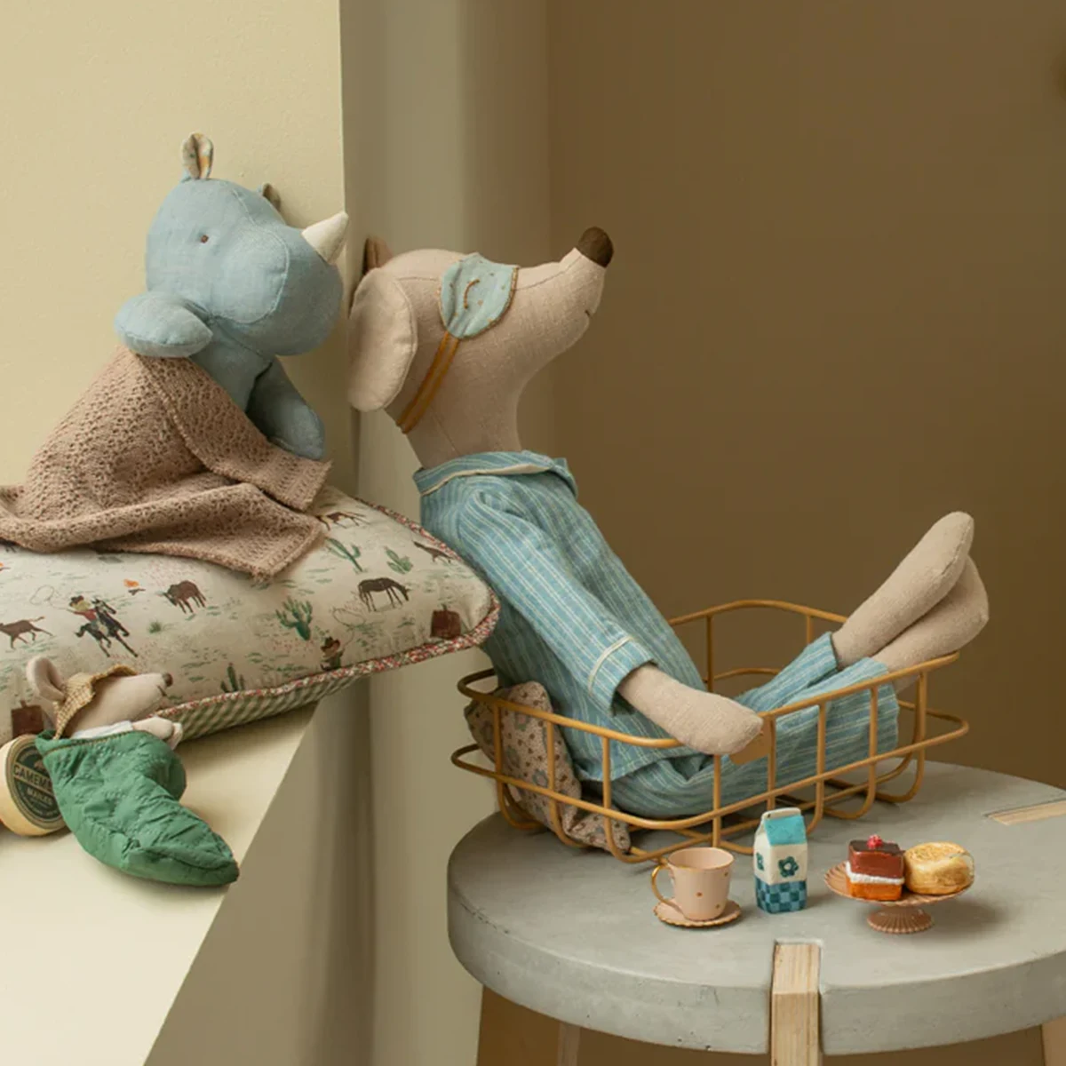 Lieferumfang: 1 Maileg Kissen ca. 39 x 23 cm, wie abgebildet, rückseitiger Stoff kariert. Stoffausschnitte können variieren. Lieferung ohne weiteres Zubehör.