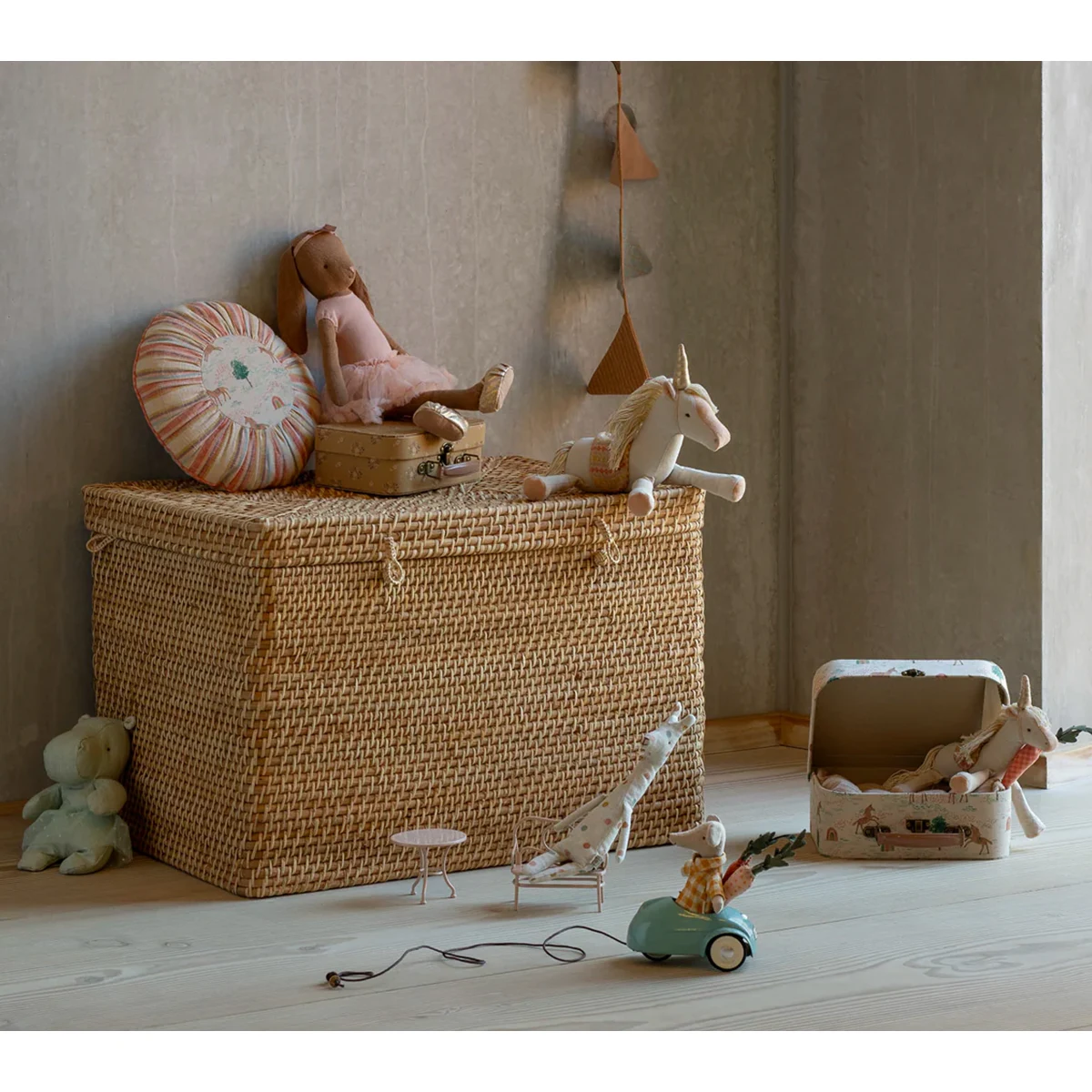 Lieferumfang: 1 Maileg Kissen ⌀ ca. 26 cm, wie abgebildet. Mit Einhorn-Stoff im Maileg Stil nach Dorthe Mailils Zeichnungen. Stoffausschnitt kann vom Foto abweichen. Lieferung ohne weiteres Zubehör.