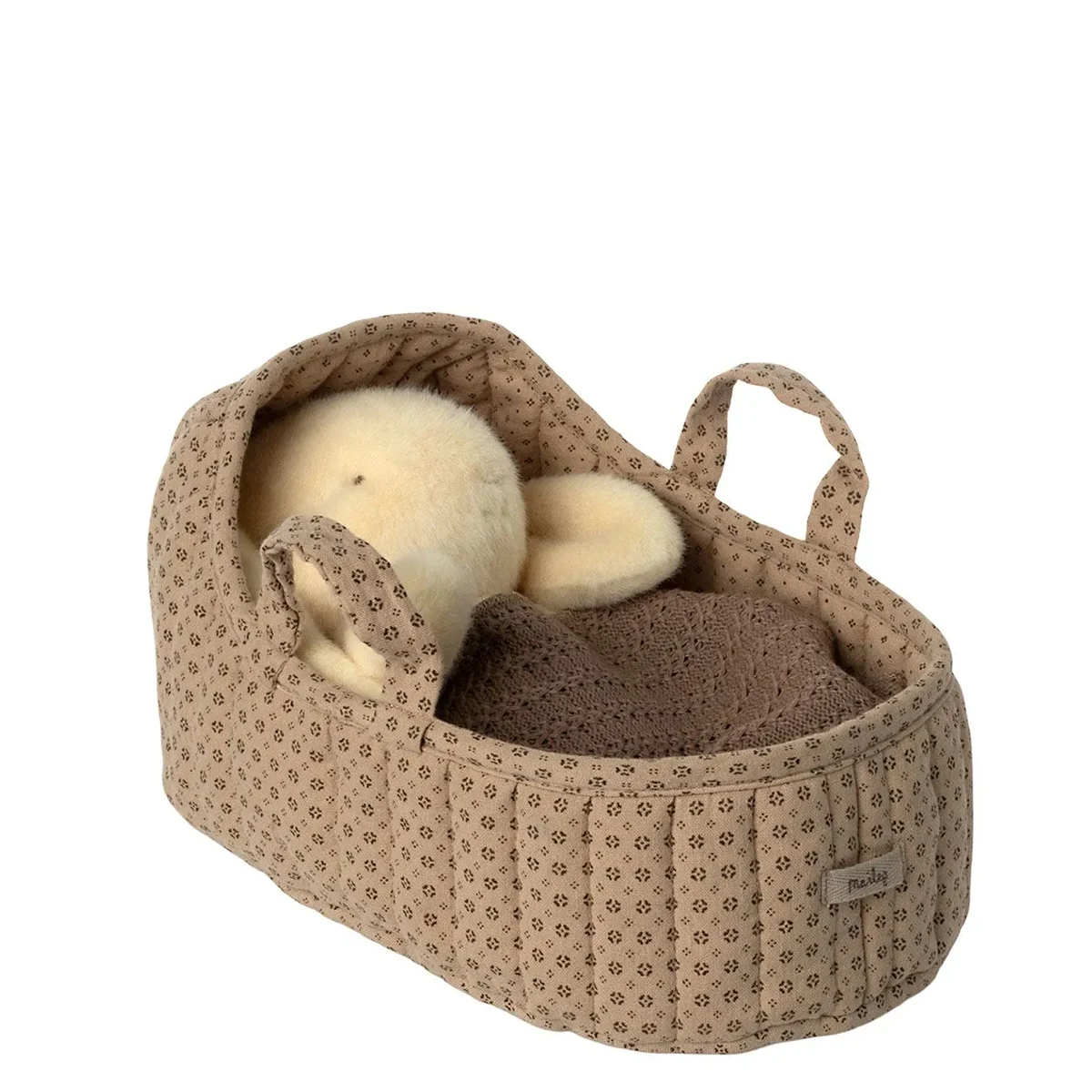 Lieferumfang: 1 Maileg Tragetasche groß, Sand mit kleinem Kissen und Decke. Lieferung ohne Maileg Freund und ohne weiteres Zubehör.