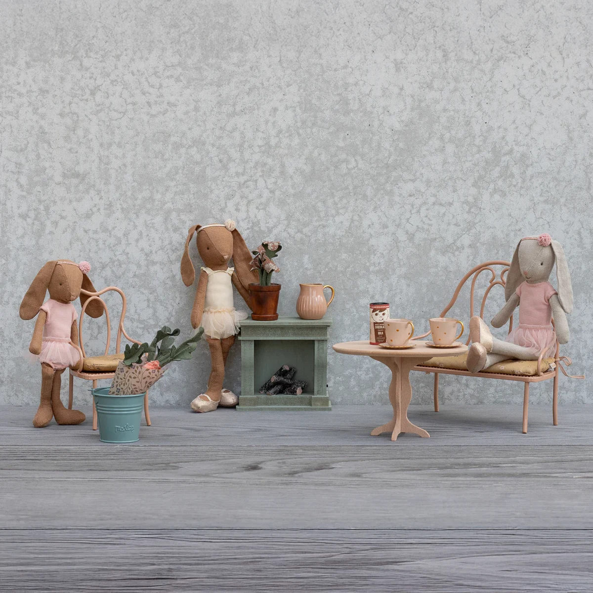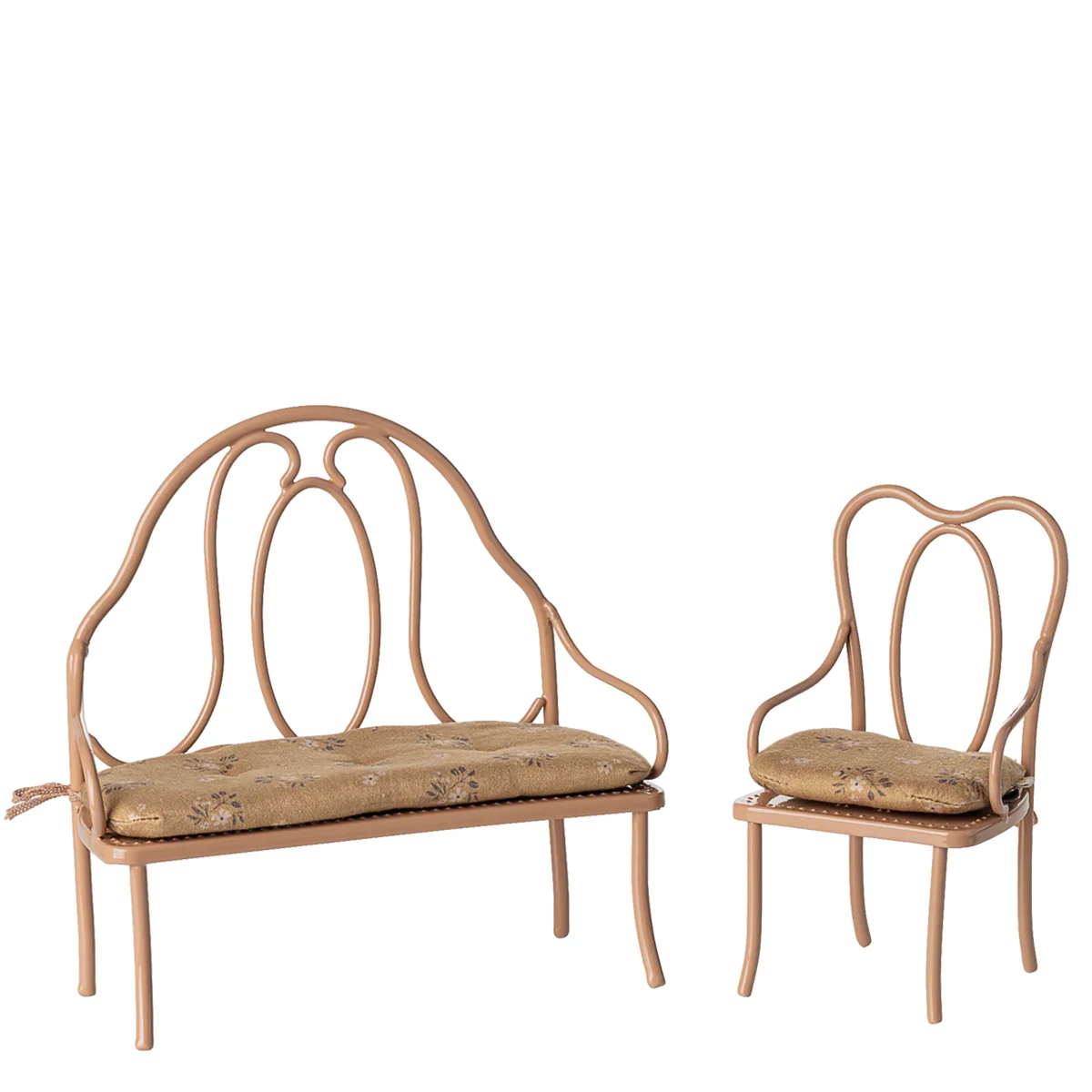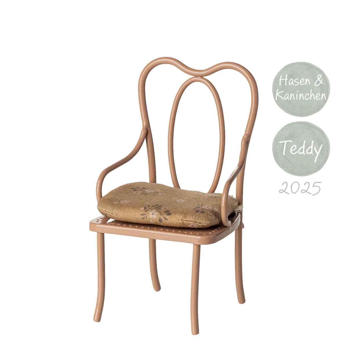 Lieferumfang: 1 Maileg Vintage Stuhl in dunklem Powder (pudrigem Rosa) mit geblümtem Sitzkissen. Lieferung ohne weiteres Zubehör und ohne Hase/Kaninchen.